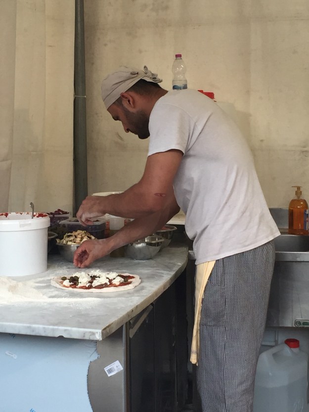 Love the good looking pizza!! The food looks exponentially better in Italy. Mama, love the black skirt. You look like a hip hiker!